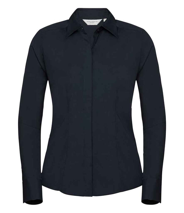 Russell Collection Ladies Long Sleeve Fitted Poplin Shirt | French Navy
