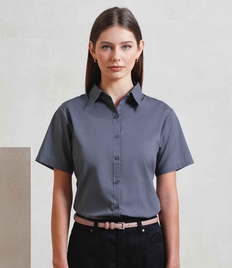 Premier Ladies Short Sleeve Poplin Blouse | Steel